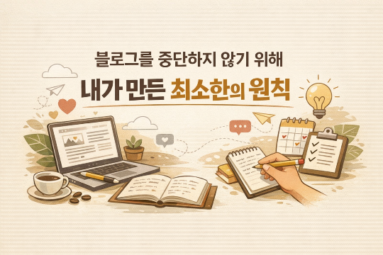 블로그를 오랫동안 지속하기 위해 내가 가장 먼저 바꾼 것은 ‘매일 글을 쓰겠다’는 목표가 아니었다. 오히려 그보다 먼저 정리해야 했던 것은 글을 쓰지 않는 날에 어떻게 블로그와의 연결을 유지할 것인가였다. 예전에는 하루라도 글을 쓰지 않으면 실패한 느낌이 들었고, 그런 공백이 이틀, 삼일로 이어지면 다시 글쓰기로 돌아오는 일이 더 어려워졌다. 공백 자체가 부담이 되었고, 시간이 흐를수록 ‘이제 와서 다시 써도 될까’ 하는 생각이 들며 글쓰기를 미루는 시간이 길어졌다. 그래서 나는 방향을 바꾸었다. 글을 쓰지 않는 날에도 블로그와 멀어지지 않기 위한 나만의 방식을 만들기로 했다. 예를 들어, 이전에 쓴 글을 한 번 다시 읽어보는 것만으로도 충분했다. 혹은 다음에 쓰고 싶은 주제를 한두 줄 메모하거나, 메모 앱에 떠오른 문장을 간단히 남기는 식으로 블로그에 대한 감각을 유지했다. 이렇게 부담 없이 가볍게 연결할 수 있는 고리를 만들어두자, ‘쉬는 날’이 ‘중단’으로 이어지지 않았다. 글을 쓰지 않더라도 블로그는 내 일상 속 어딘가에 존재했고, 덕분에 다시 돌아오는 것이 어렵지 않게 되었다. 블로그는 완벽한 준비가 되었을 때만 열어보는 공간이 아니라, 가볍게 떠올리고 쉽게 손댈 수 있는 일상의 일부가 되었다. 이 접근 방식은 결과적으로 블로그를 중단 없이 오래 이어가는 데 있어 핵심적인 원칙이 되었다.